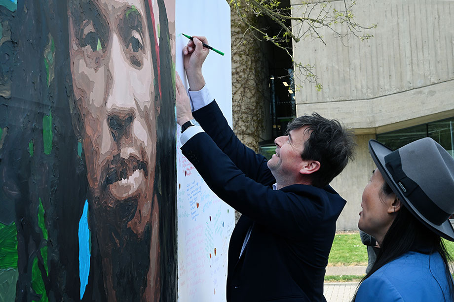 Prof Andrew Jones, Brunel’s Vice-Chancellor and President, adding his own reflections to the messages left by attendees of Benjamin Zephaniah Day
