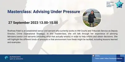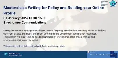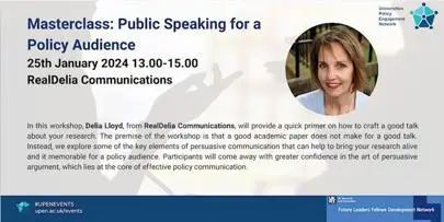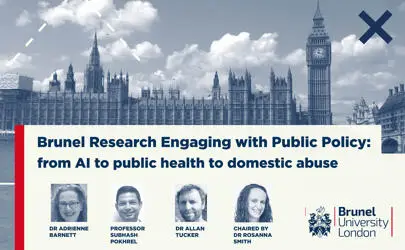 Brunel Public Policy events 20 May 2024 Public Policy Masterclass 27 Mar 2024 UPEN: Engaging policymakers with Arts and Humanities research: an introduction, 27 Mar 2024 22 Mar 2024 Parliament for Researchers with the House of Lords 21 Mar 2024 An insight into the role of senior judges in the judicial system 13 Mar 2024 UPEN Showcase Regional Academic Policy Engagement in England (Y-PERN), 13 Mar 2024 22 Feb 2024 OPPO: Translating Lived Experience to Policy, 22 Feb 2024 31 Jan 2024 Masterclass: Writing for Policy and Building your Online Profile 25 Jan 2024 Join UPEN Masterclass: Public Speaking for a Policy Audience 08 Nov 2023 Brunel Research Engaging with Public Policy: from AI to public health to domestic abuse 08 Nov 2023 OIT policy masterclass for Early Career Researchers 18 Oct 2023 Tampere University Seminar: Successful society - Some building blocks from Finland 03 Oct 2023 UPEN event: Cross-cutting policy and scrutiny challenges: Parliamentary committees ❮ 1 2 3 ❯