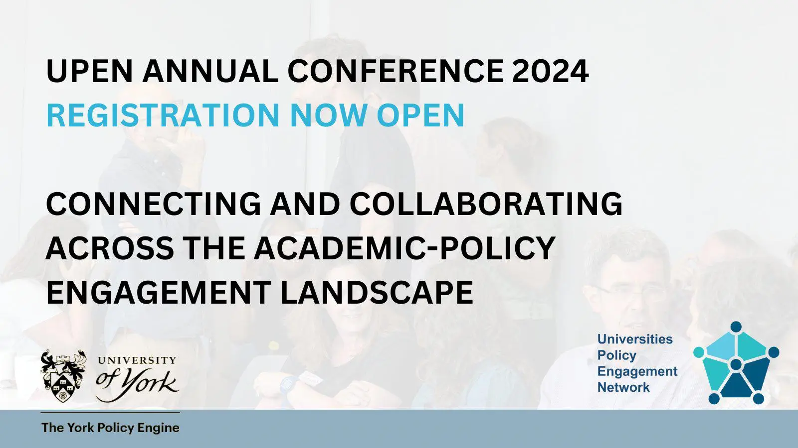 The conference will take place on the 21st of May 2024, and will be Hosted by the University of York. UPEN's theme for this year is 'connecting and collaborating across the academic-policy engagement landscape'.