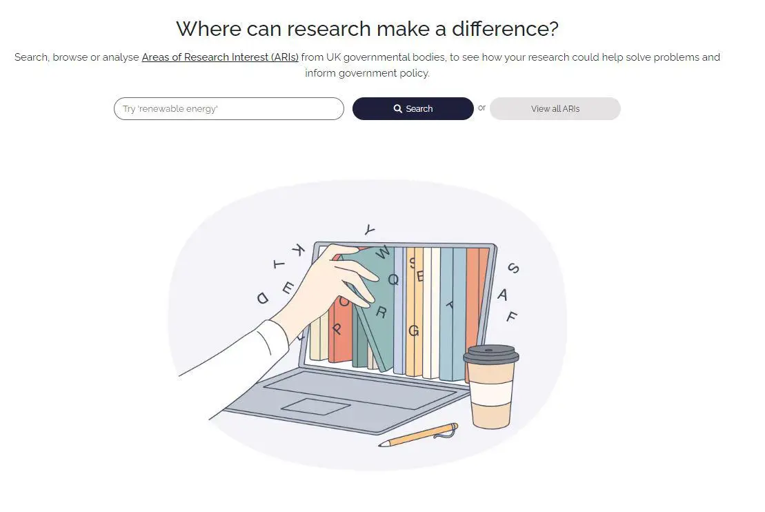 Have you been wondering how can your research make a difference? The newly released platform: Areas of Research Interest (ARIs) from UK governmental bodies, helps researchers to see how their research could help solve problems and inform government policy.