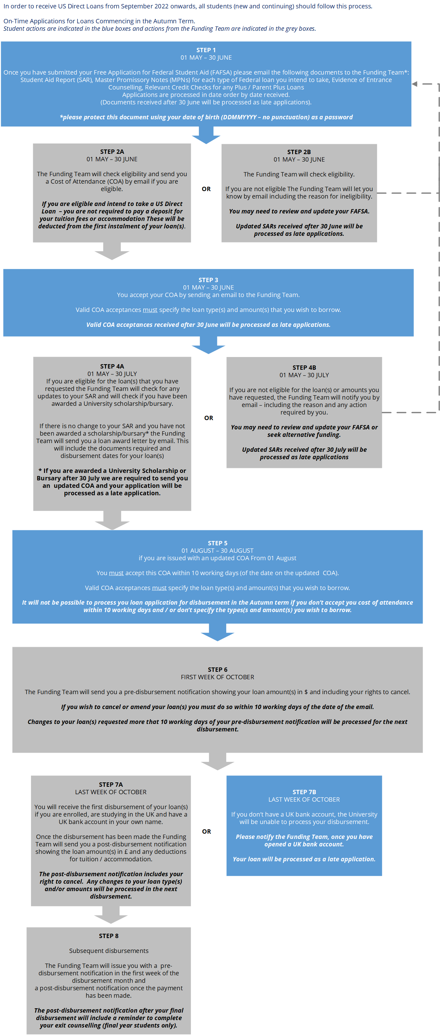 01 May to 31 July - If you are eligible for the loan(s) that you have requested, the Funding Team will check for any updates to your SAR and will also check if you have been awarded a University Scholarship/Bursary.