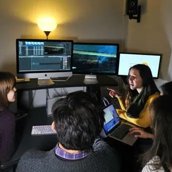 Designed to reflect the working environment of a real newsroom, the Journalism Newsroom is where you’ll learn and practice creating multimedia news. You’ll have access to a suite of Macs, all with the latest audio-visual software to help you create your work.