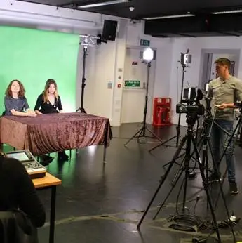 Our Radio Studio is comprises of a recording studio, that comfortably accommodates four people and a control room that seats a working group of five. The Radio Studio provides students with the latest audio recording software and technology, giving them a professional broadcast experience.