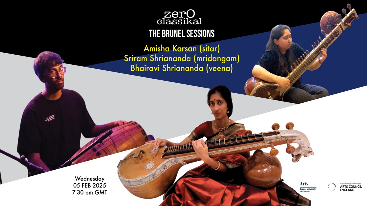 Brunel Arts and ZerOclassikal are excited to showcase two incredible styles of South Asian Classical music inspired from the North Indian continent Classical and Carnatic traditions, featuring emerging sitarist Amisha Karsan and veena player Bhairavi Shriananda, accompanied by mridangam player Sriram Shriananda.