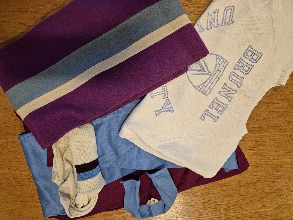 As part of the visit, Rita kindly donated a number of items she had kept to the University Archive – from her original application and examination papers, to her hockey shirt and Brunel scarf – thank you so much Rita, they are a very welcome addition to our holdings. We were particularly pleased to receive a Brunel scarf – as we have one for all of our predecessor colleges.