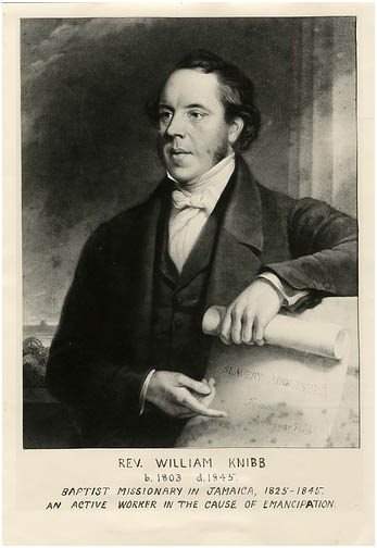 William Knibb was born in Kettering, Northamptonshire, in 1803. His father was a tailor and he was one of eight children. Aged 12 William was apprenticed to a printer and moved to Bristol. In 1822 William became a Baptist. The following year William’s older brother Thomas went to Jamaica as a school teacher, under the auspices of the Baptist Missionary Society. He died only 14 months later, and William offered to take his place.
