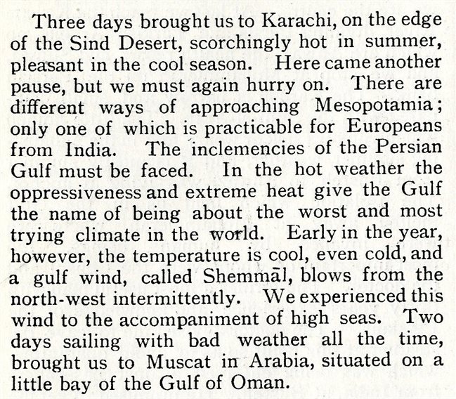 In 1917, a student took a trip around Mesopotamia (now Iraq, Kuwait, Syria, and Turkey). She took advantage of having a friend living in Muscat (in what is now Oman) to take an extensive tour of the area.