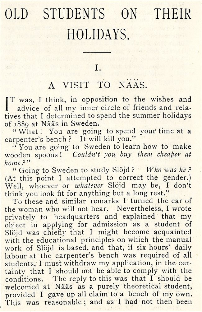 In 1891 a Maria Grey College alumna decided to spend her summer holidays in Sweden studying the practice of Slöjd. In Swedish Slöjd means craft, it is a system of handicraft based education that is still popular in Scandinavia today. This student was met with considerable opposition to her decision to travel, nevertheless she persisted.