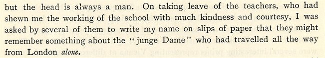 In 1888 another student travelled to Vienna and on her trip stopped by a local school. The teachers there were shocked that she was travelling alone.