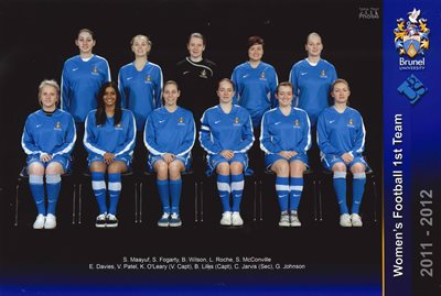 Unfortunately, we don’t hold women’s football team photographs in the archives until 2011. Below is our oldest team photograph and the kit has since changed to the more recognisable Brunel dark blue and white.