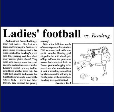 It has taken women’s football many years to recover but the sport has really begun to make a huge impact in the last two decades. Looking to Brunel, the first formal university team debuted in 1991 though there are references in the student newspaper ‘Le Nurb’, that women played football on campus as early as 1989.
