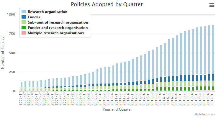 The number of funders adopting policies requiring open access for publications arising from their research has grown exponentially over the last decade, with their growth further spurred by the implementation of Plan S in January 2021.
