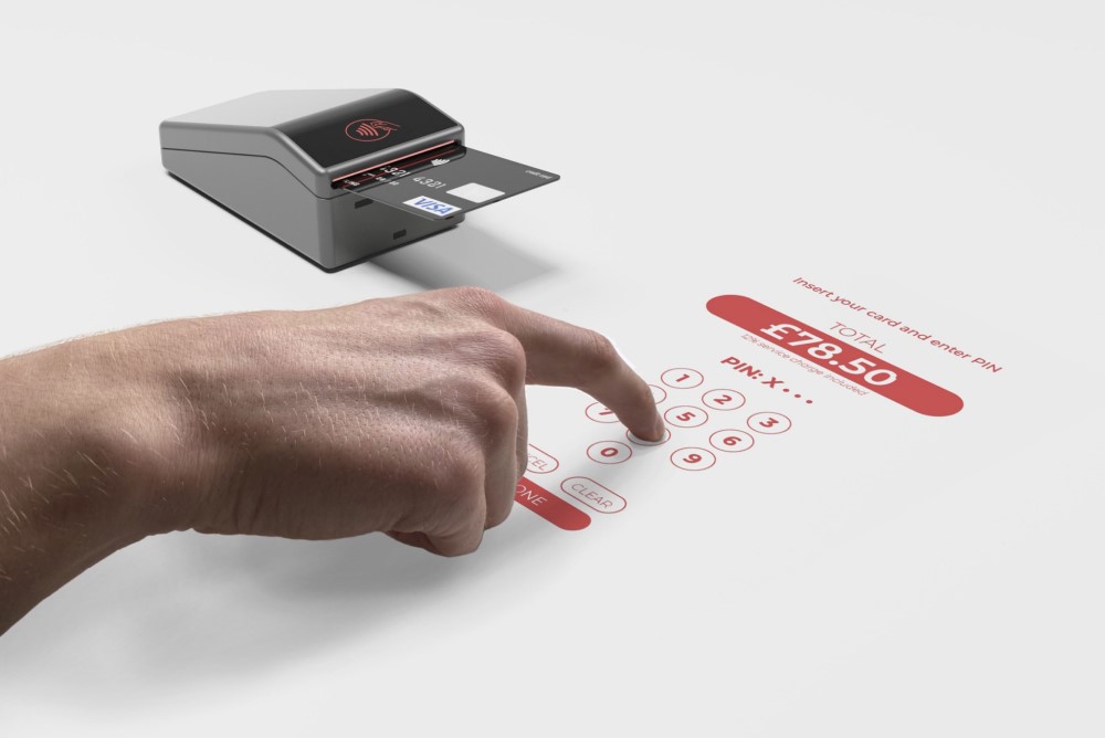 Gabriele Grigaite’s Pinteq card terminal allows restaurant guests to make card payments safely. Made in Brunel 2021.