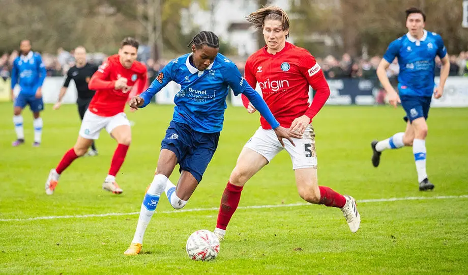 Playing at home in their Brunel-emblazoned blue shirts in front of a packed-out Grosvenor Vale, Wealdstone’s David-versus-Goliath match with a local twist – they play a few miles north-east of Brunel’s Uxbridge-based campus, and Wycombe 20 miles north-west – made for irresistible viewing on the national broadcast channel ITV1.
