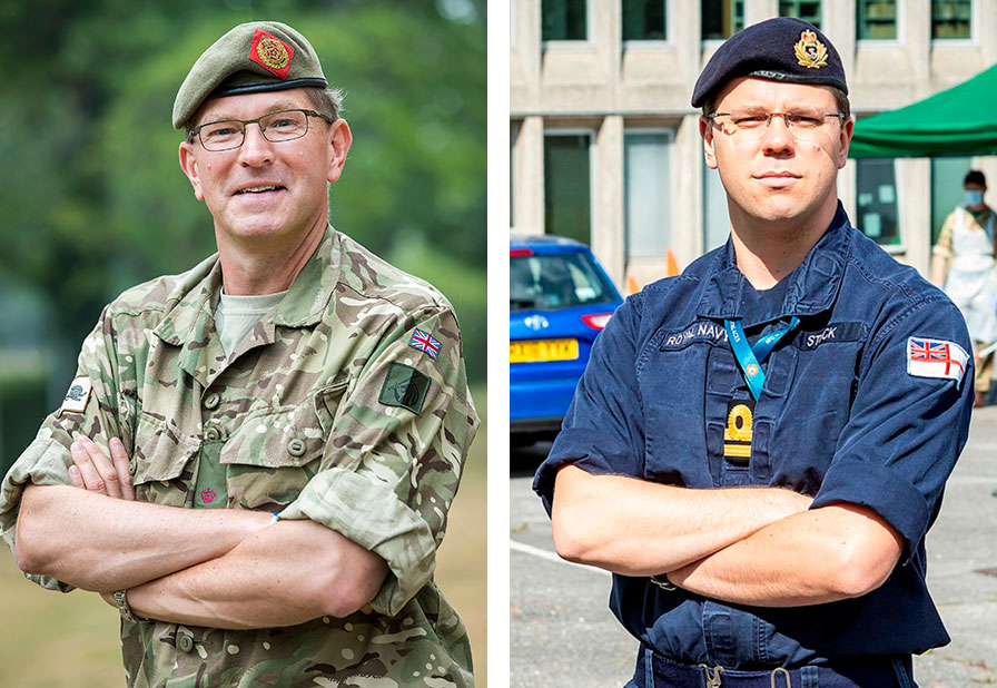 Major Mike Keighley, Army Reservist; and Lieutenant Chris Stock, Royal Navy Reserve Officer