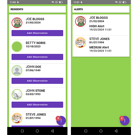 Data collected from the SmartSocks™ alerts carers to distress via a smartphone app, allowing them to respond as they usually would to support the resident.