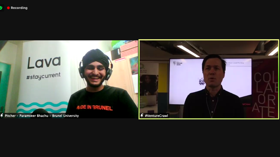 To round off the event, the famous London Venture Crawl Pitching Competition took place. All London based universities taking part in Venture Crawl have the option to put forward a student representative to pitch their business idea to be crowned Venture Crawl Pitching Champion of 2021. This year, final year Product Design Engineering student Paramveer Bhachu, the co-founder of Lava represented us at the inter-university pitch off.