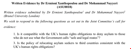 Ermioni was granted the Athena Swan Research Award 2022-2023 to conduct her individual research project on externalising trends of asylum law. Together with Dr. Nayyeri, they published evidence that the government's asylum policy was unlauful.