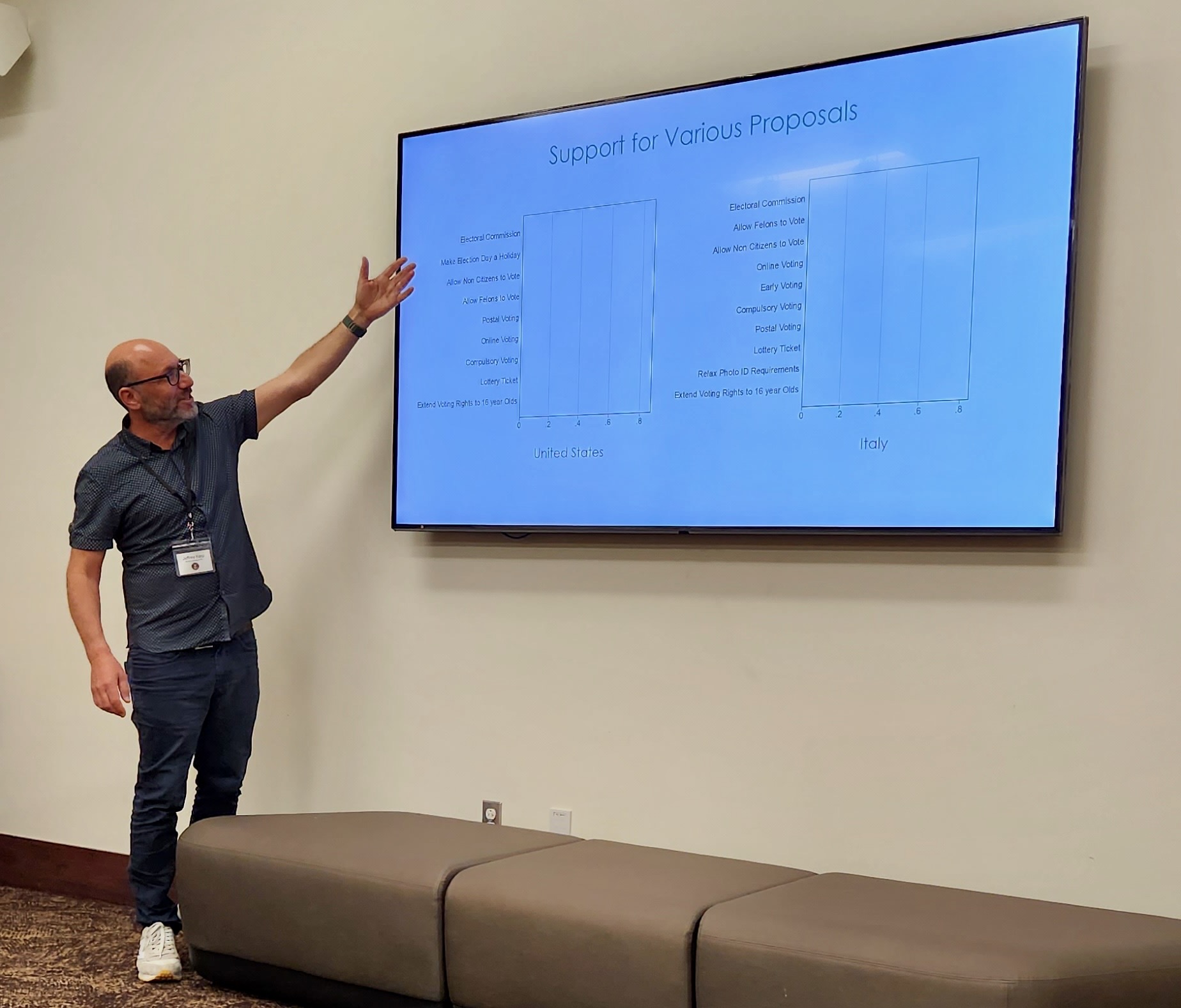 He was a Visiting Professor at Luiss University in Rome in 2024-25. In 2015-16, he was a visiting fellow with the Electoral Integrity Project, based at the University of Sydney and carried out a three wave panel survey for the Australian Electoral Commission. Results from the survey have helped to inform the debate about how to modernise the electoral process and improve the voter experience in Australia.