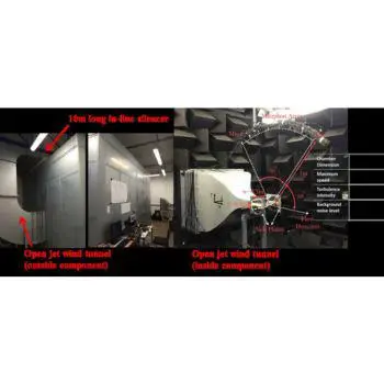 Anachoic chamber and aeroacoustics open jet wind tunner