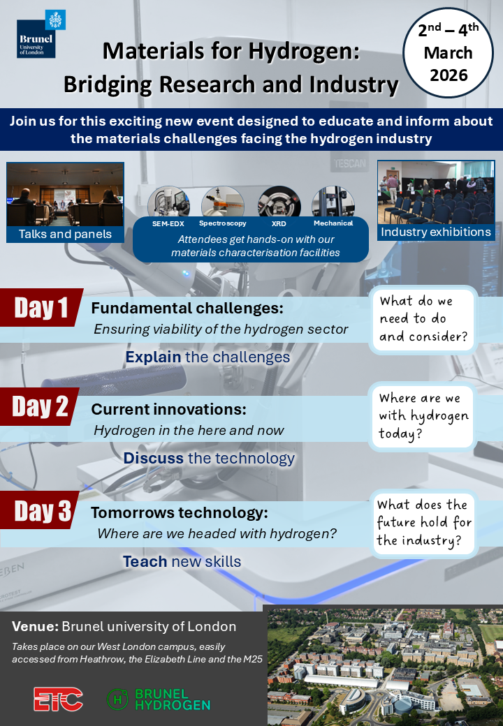 We warmly invite anyone working in materials characterisations and hydrogen (or related areas) to speak at our event. Be it giving a talk or taking part in a panel discussion, we welcome your expertise.