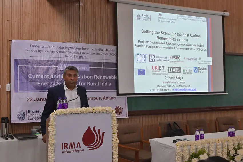 To address the lack of robust transmission and distribution network in rural locations (>65% of India’s population lives in villages), it is imperative that village-scale decentralized power generation systems assisted by dedicated mini- or micro-grids are deployed. In this context, the DeSHI project, led by Brunel University London in collaboration with Arktik Renewables and Energy Efficiency Pvt Ltd (India) and Institute of Rural Management Anand (India), is investigating the technoeconomic feasibility and potential societal impact of advanced solar photocatalytic and electrolytic hydrogen generators in rural India in the run up to 2070 (India’s committed deadline to become a zero-carbon economy) and in the post-carbon India (after 2070). Informed deployment scenarios, performance parameters and industry perspective data are being employed to understand and evaluate the impact and disseminate project outputs. The potential generative impacts of solar hydrogen in supporting rural commercial, industrial and horticultural activities are being particularly evaluated.
