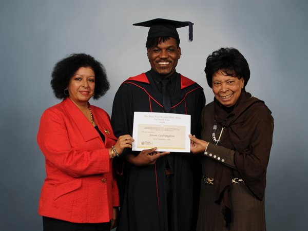 The prize is generously sponsored by Linda Haye (right of Jason in the photo) and the Caribbean Women’s Equality and Diversity Forum.