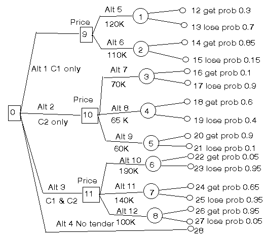 Hence for the decision node relating to the tender decision we have the four alternatives:
