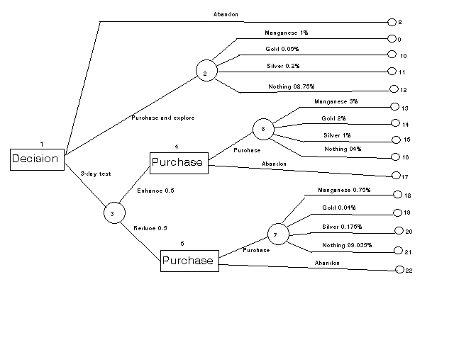 MDG can, if they wish, pay £750,000 for the right to conduct a three-day test exploration before deciding whether to purchase the parcel of land or not. Such three-day test explorations can only give a preliminary indication of whether significant metal deposits are present or not and past experience indicates that three-day test explorations cost £250,000 and indicate that significant metal deposits are present 50% of the time.