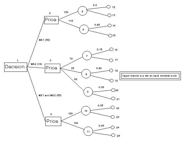 With regard to the consultants offer then, ignoring ethical considerations, we could of course, tender 60 for MS2 only without her help and if we were to do that we would have a 0.95 probability of having our tender accepted. Hence there are essentially three options: