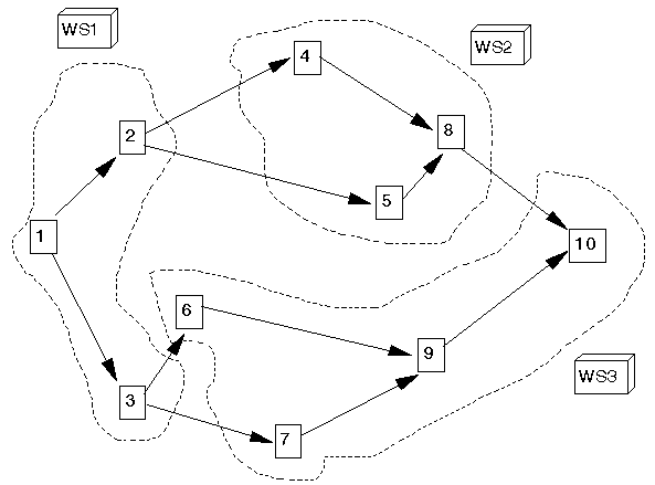 Note here that in the figure below the workstation order, and the sequence of work within each workstation, are such as to satisfy the successor relationships (technological restrictions) stated before.