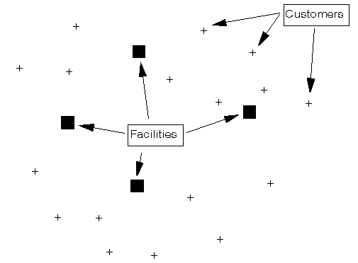 Typically here facilities are regarded as "open" (used to serve at least one customer) or "closed" and there is a fixed cost which is incurred if a facility is open. Which facilities to have open and which closed is our decision.