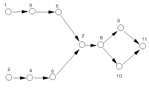 To illustrate this let us take T=27 and the network we considered above. We already have the critical path of 1-3-5-7-8-9-11 calculated using the expected (mean) completion times, although we could have done this calculation without a computer if necessary. Note here that for this problem there is only one critical path.