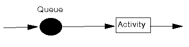 In essence all queuing systems can be broken down into individual sub-systems consisting of entities queuing for some activity (as shown below).