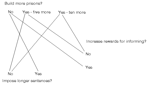 Note that the actual decision scheme that we choose may be altered by the results of the explorations. For example if our explorations reveal there are no sites available for five prisons.